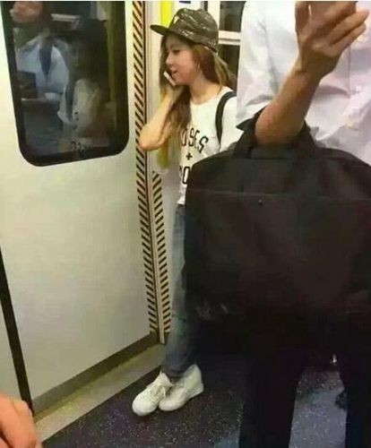 邓紫棋私下还挺接地气的,穿着牛仔裤独自一人乘坐地铁。