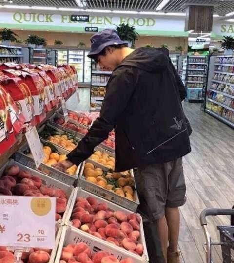 林更新这个单身狗则在超市一个人孤独的挑选水果……不知林狗看到好基友赵又廷陪圆圆逛超市却不陪他,内心作何感想啊,大概内心OS是:“呵,男人”吧,哈哈哈。