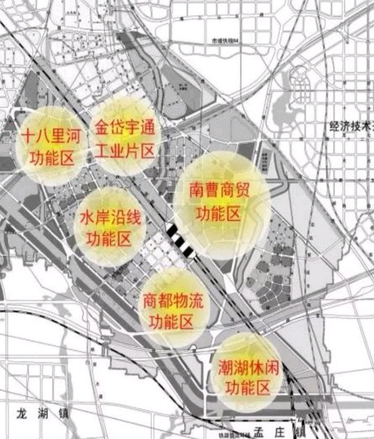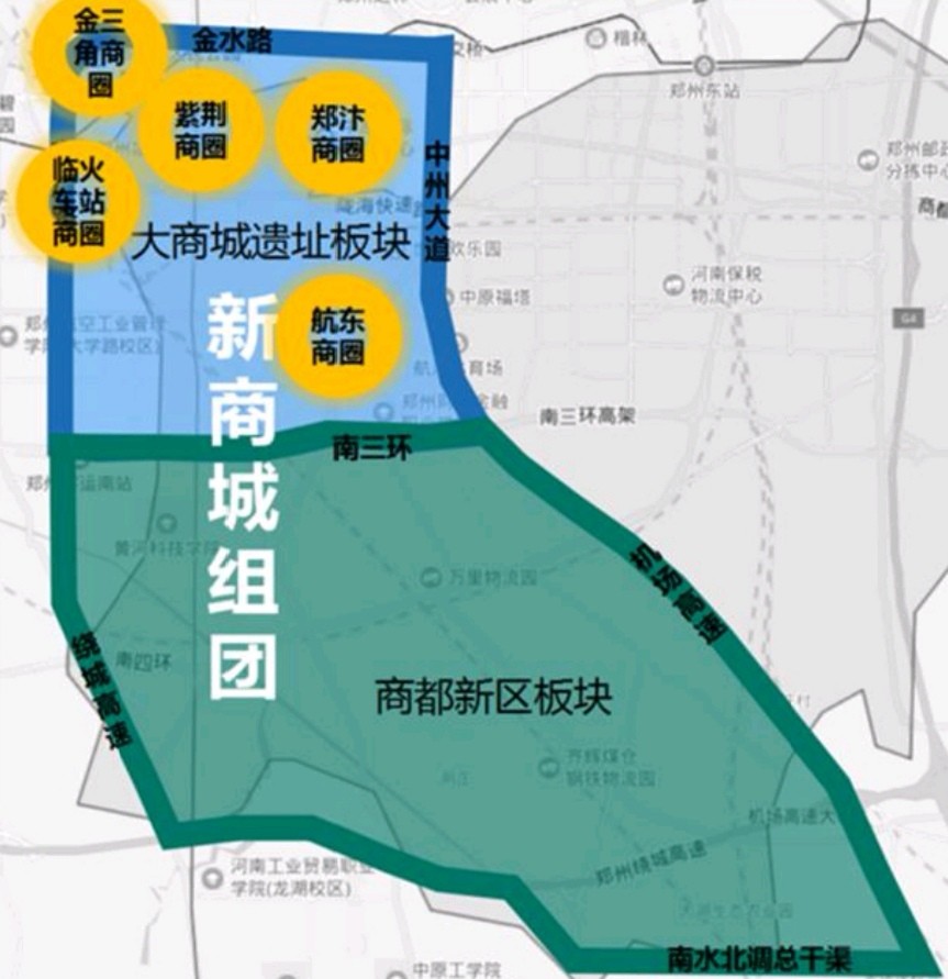 老城区:商圈集中分布在大商城遗址板块,以商城遗址保护改造为带动,高标准建设商都文化特色商业区,生活气息浓厚