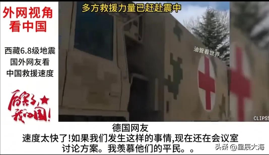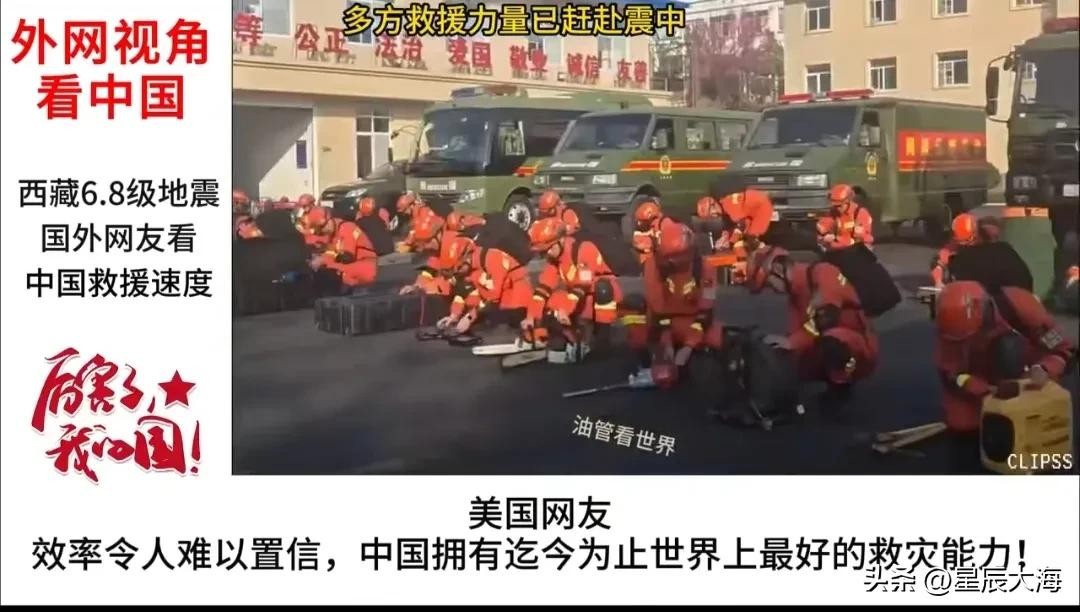 1月7日9时5分,西藏日喀则市定日县发生6.8级地震。在灾难发生的第一时间,政府和军队迅速做出反应,这一快速反应让全体国人感到自豪,也让广大国外的网友感到震惊。