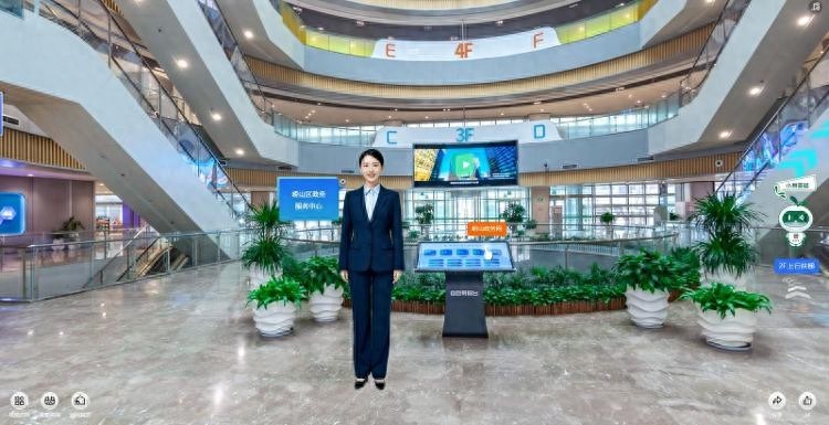 “借助VR技术,我们将政务服务中心1:1映射到三维数字空间,720度实景呈现政务服务中心的地理位置、业务布局、窗口设置等内容,办事群众可随意切换场景直达行政审批、公安、医保等业务区域,身临其境地了解想要办理的事项应该去哪个窗口,避免出现多绕路、排错队、找错楼层的问题。”崂山区行政审批服务局技术服务科负责人高飞向记者介绍道:“在此基础上,我们还应用了AI和数字人技术,通过语音播报方式提供个性化的政策解读和流程讲解,更有智慧‘小易’针对高频事项进行互动问答,提高咨询效率,让群众有更加优质、暖心的政务服务交互体验。”