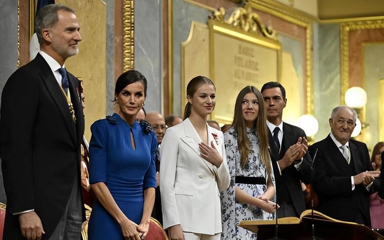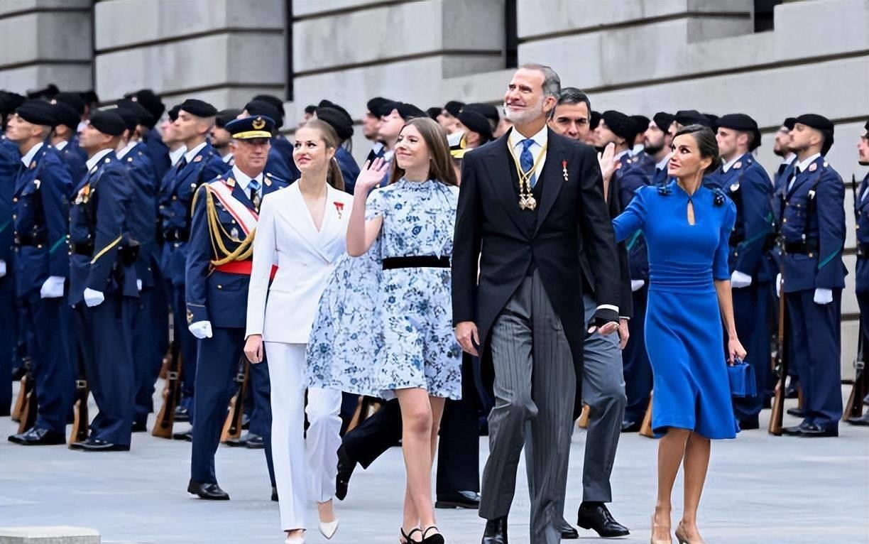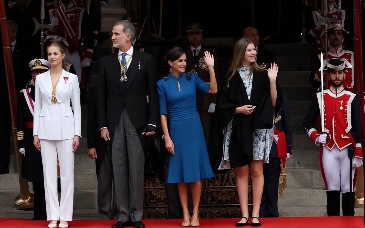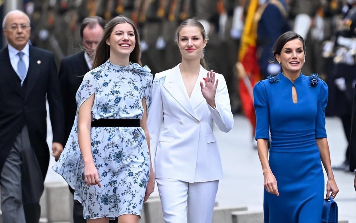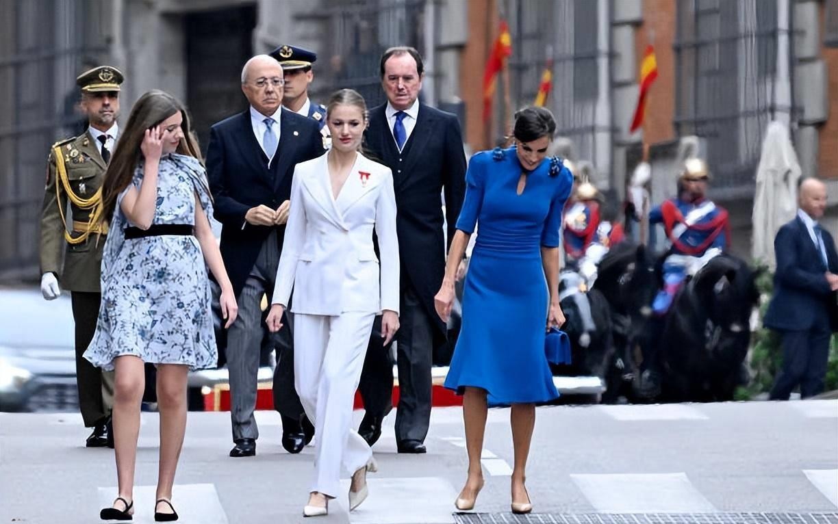 18岁成人礼!西班牙大公主白色西装超霸气,妹妹蓝色斗篷惊艳亮相