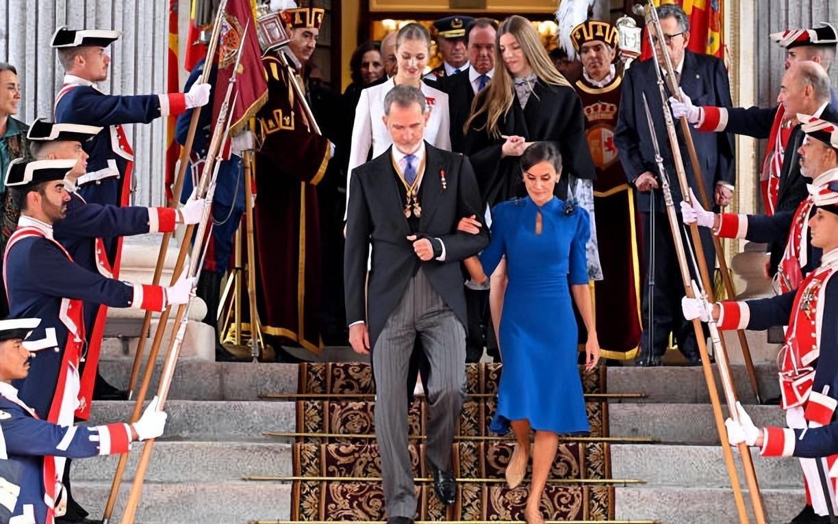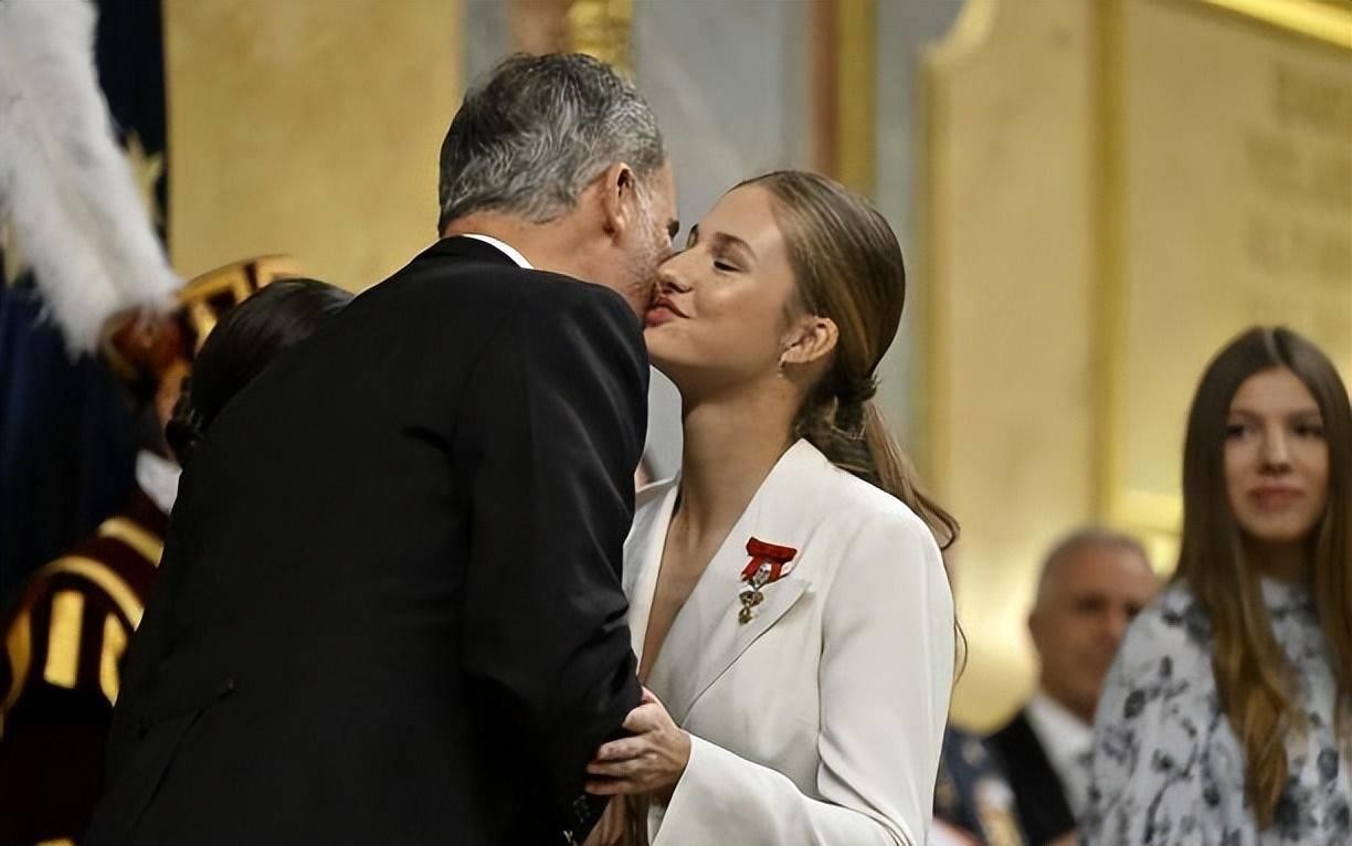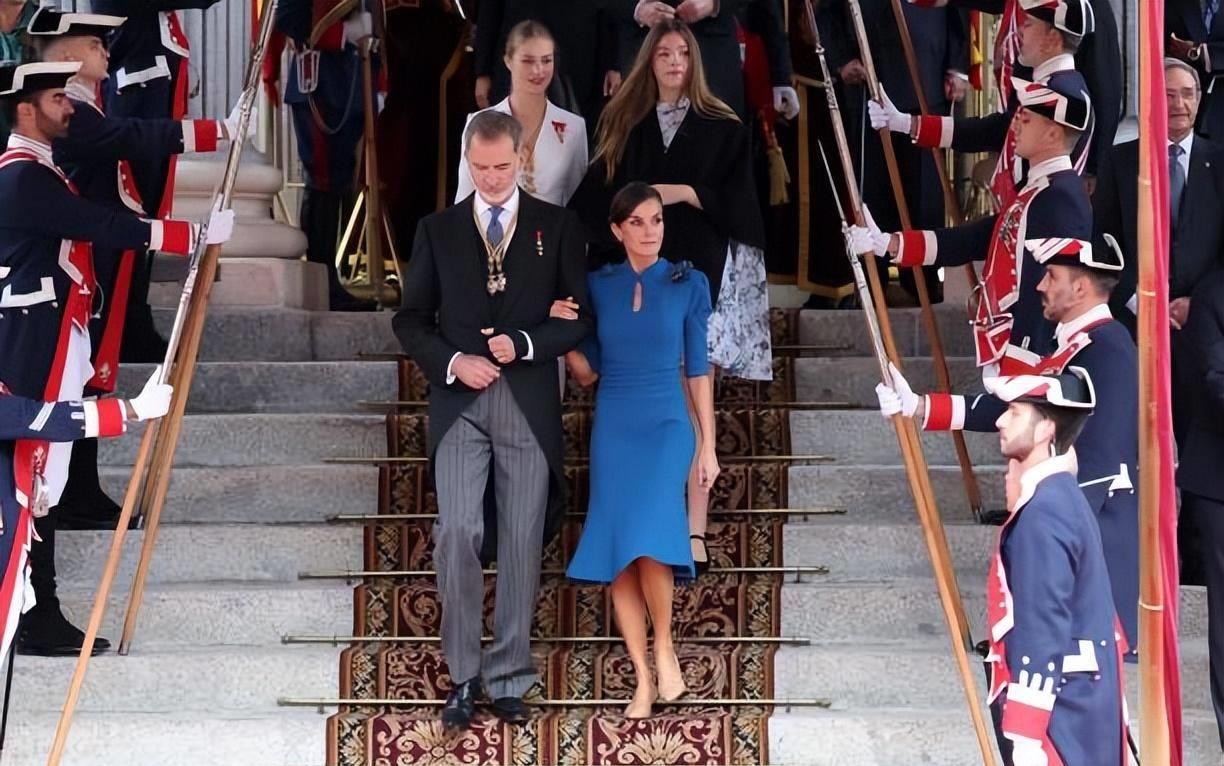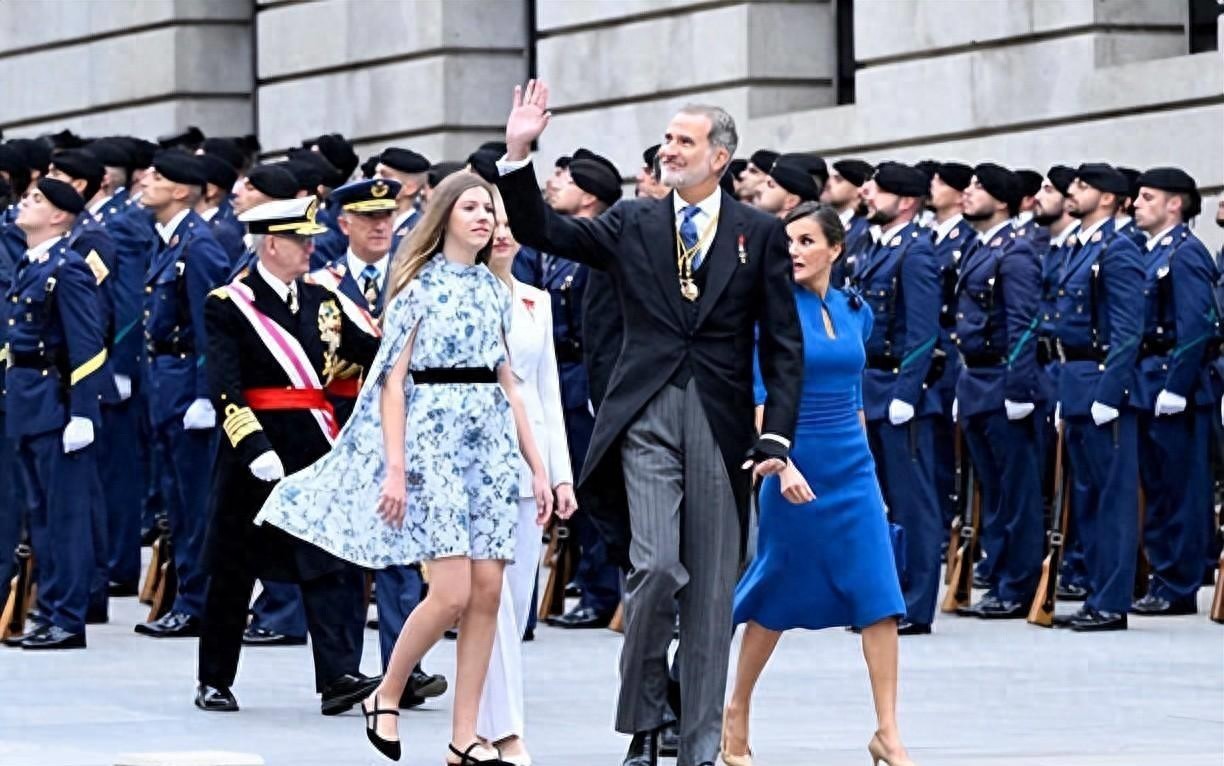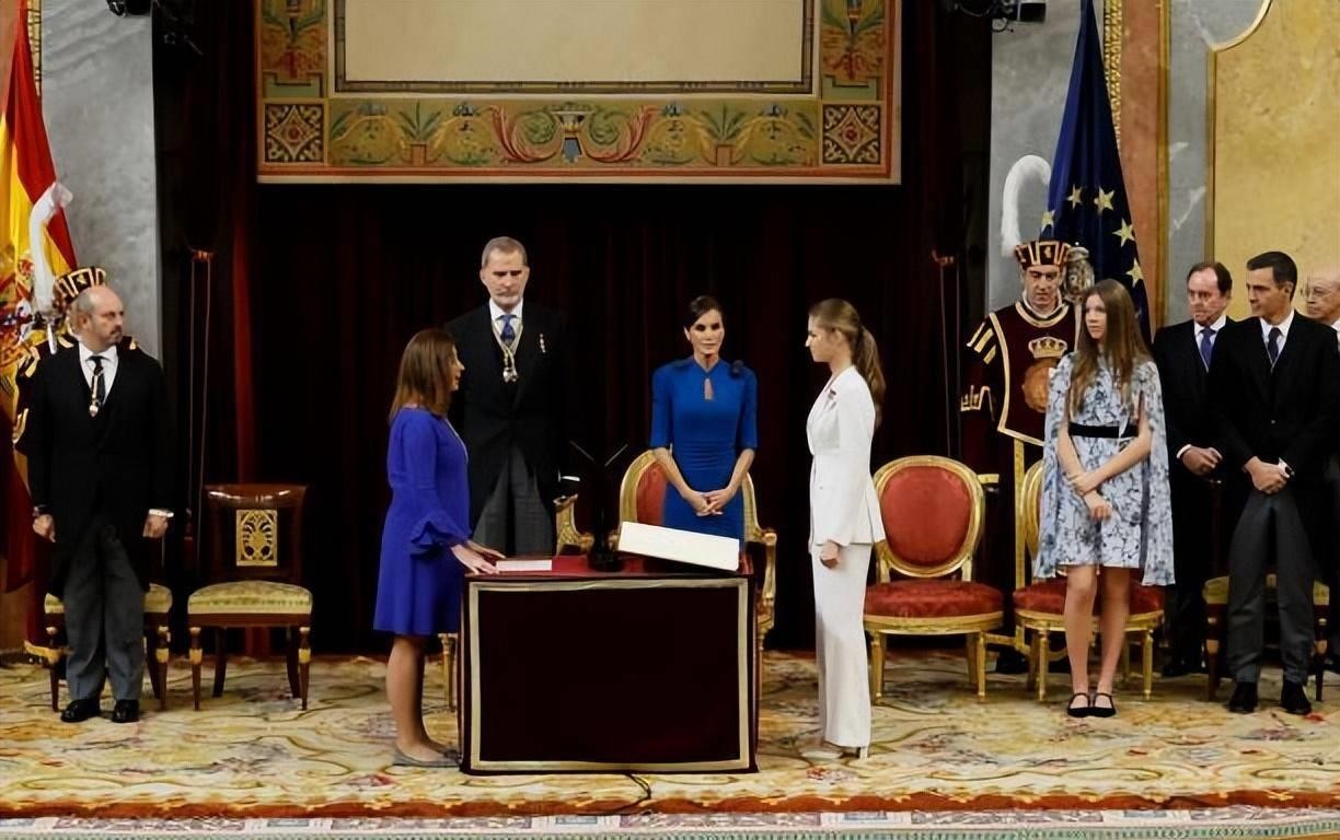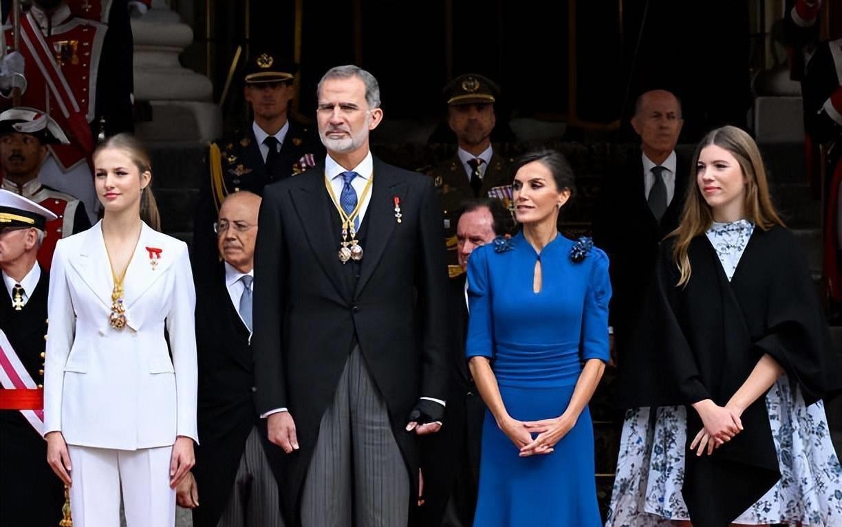 18岁成人礼!西班牙大公主白色西装超霸气,妹妹蓝色斗篷惊艳亮相