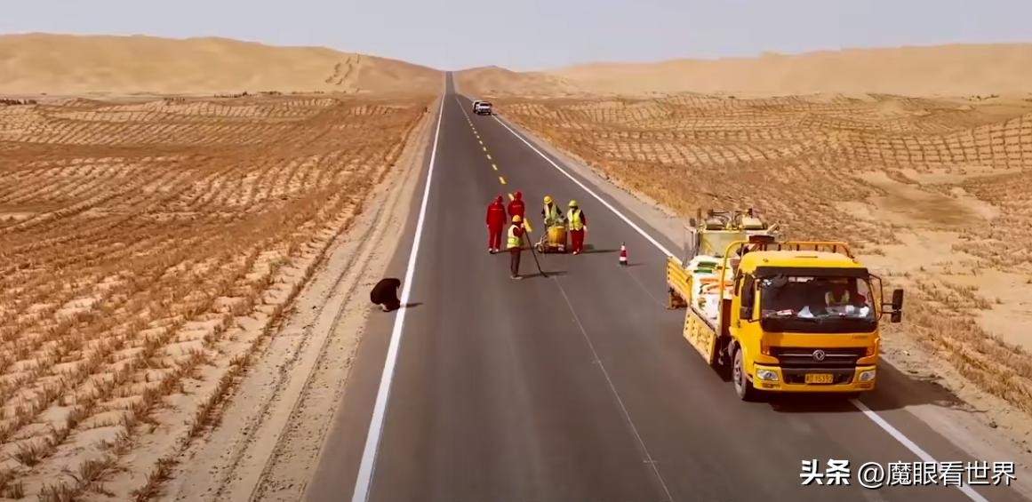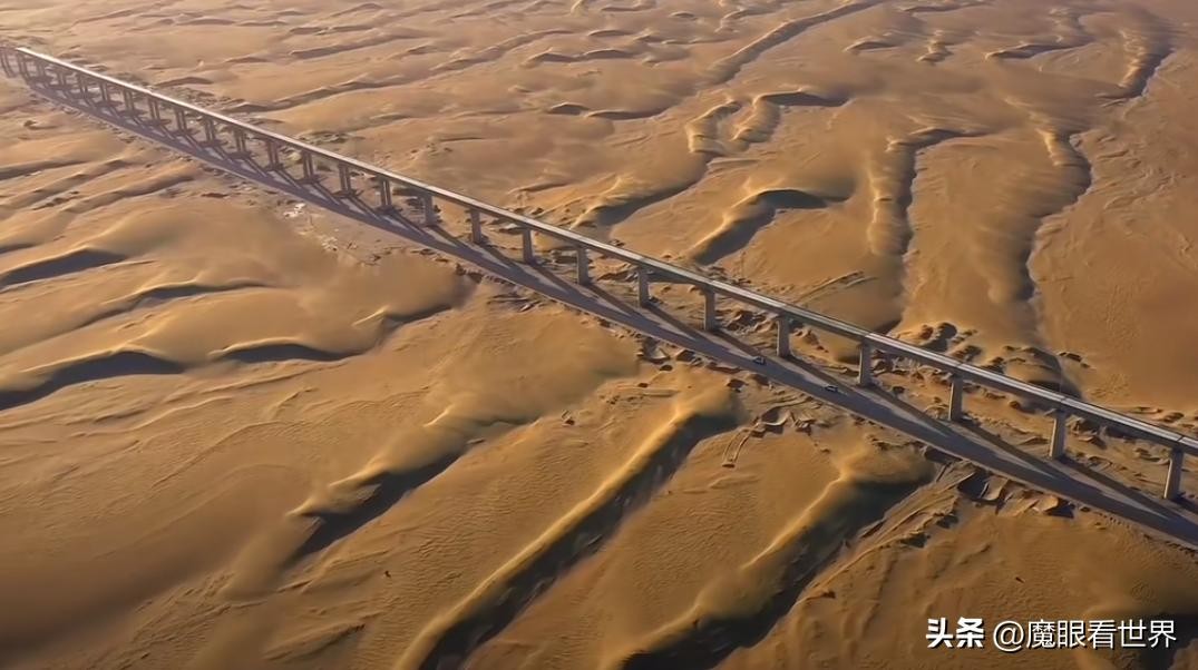 这里的沙漠以每年20米的速度流动,看似很慢,实则对沙漠周边的村庄和农田危害极大,在这里搞基建更是个世界难题。但是在我国,这都不是问题。