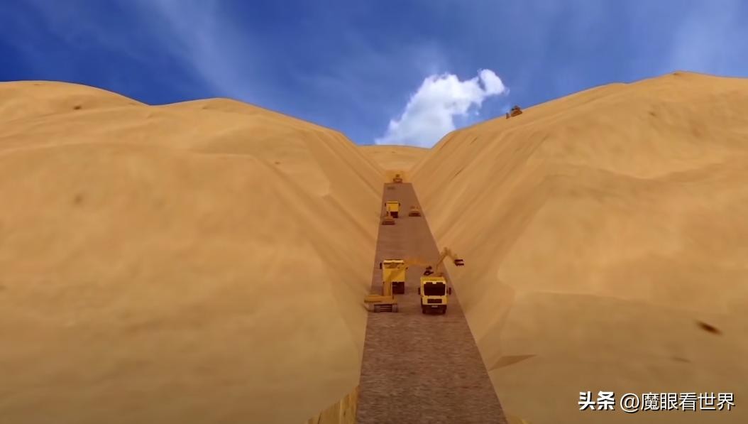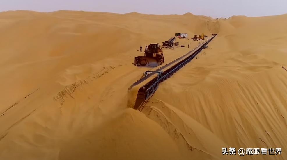 聪明的建设者采用了用煤炭传输带的方式,把多余的沙子导出去,每天24小时不停的传输。终于在2022年6月正式通车。