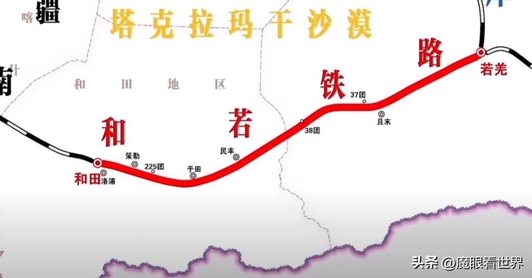 除了公路,还有长达825公里的和若铁路,其中有3/4的 路段修建在塔卡拉玛干沙漠上。