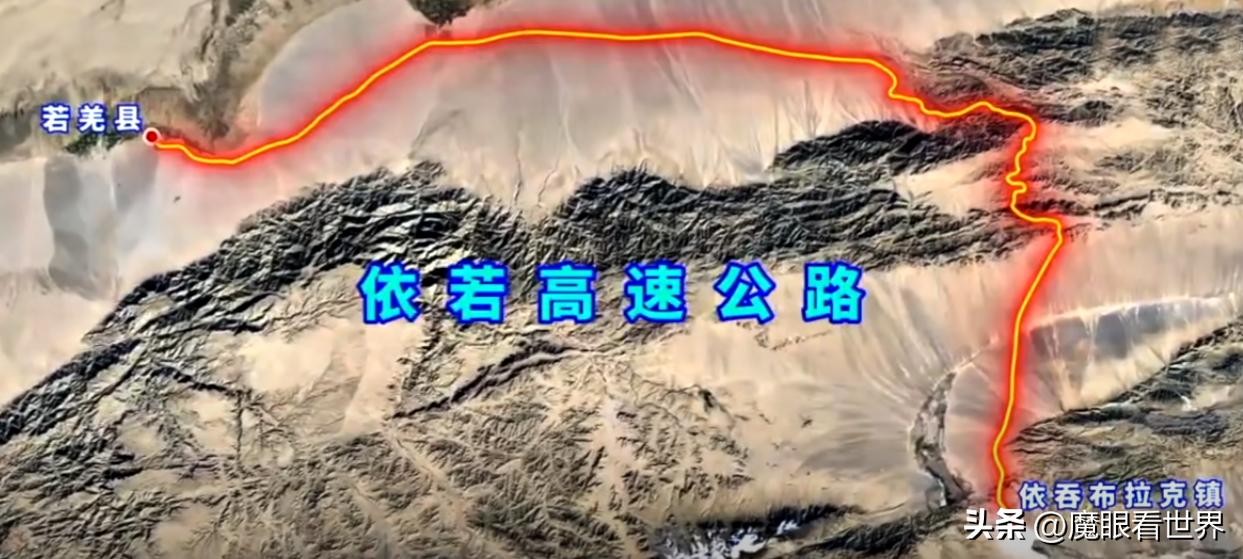 除此之外,在东南边的死亡之海——罗布泊,也挡不住我国强大的基建,一条穿越罗布泊的高速公路横空出世,它就是——依若高速,于2022年8月正式通车。