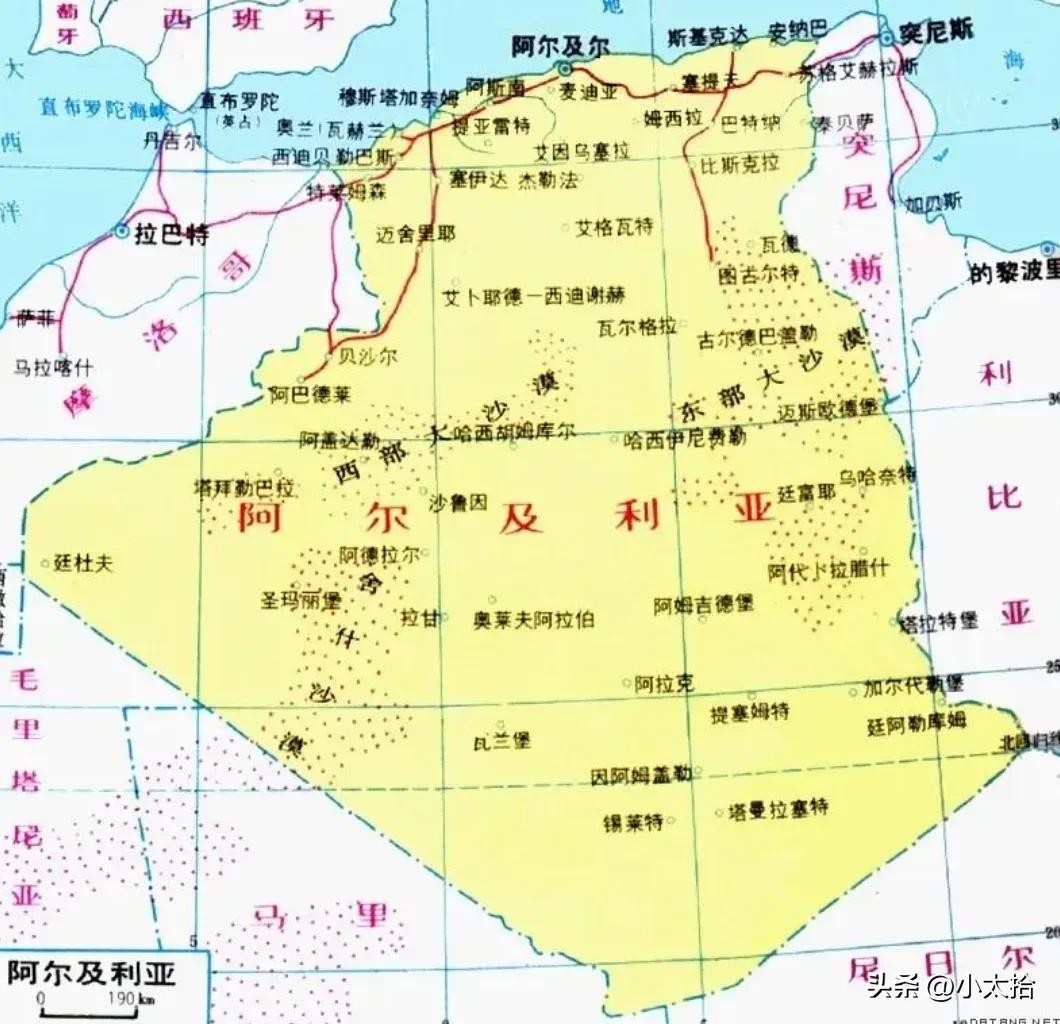阿尔及利亚北靠地中海,国土大部分都是沙漠,天然气出口量居世界第二。