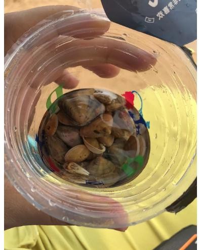 这是孩子做到海边,从沙滩里摸到的蛤喇,最后摸到将近一矿泉水瓶