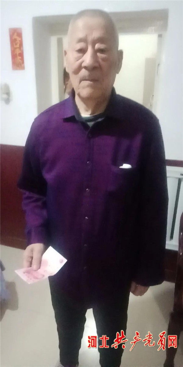 93岁老党员崔国祥为疫情防控捐款 崔国祥出生于1927年1月,1949年7月加入中国共产党,流河镇南辛房村人。解放战争时期,崔国祥从一名普通老百姓开始,就义务为党组织收集敌军情报,每天借串亲、赶集之名,深入敌军据点附近观察敌人动态,发现情况及时汇报党组织,青县解放以后,他回村担任村干部,为乡村建设发展贡献了毕生的精力。