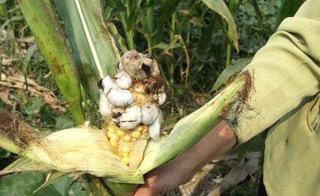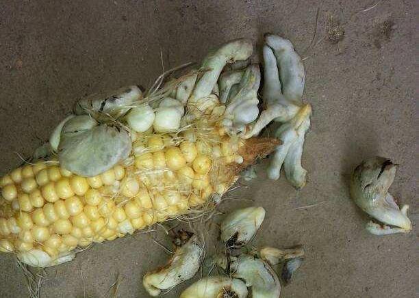 每到收获玉米的时候,地里总能发现“黑黑菌”,“黑黑菌”又叫“玉米黑粉菌”,其实是真菌。这种看着像变异了的玉米,其实是由一种黑粉真菌所引起的局部感染性病害,有的时候会呈现黄绿色,或者是紫红色,然后渐渐变成灰白色,孢子裂开之后会看到黑色的粉末状。玉米出现这种真菌病变,很多农民都犯愁,影响收成不说,还担心传染其它玉米植株。