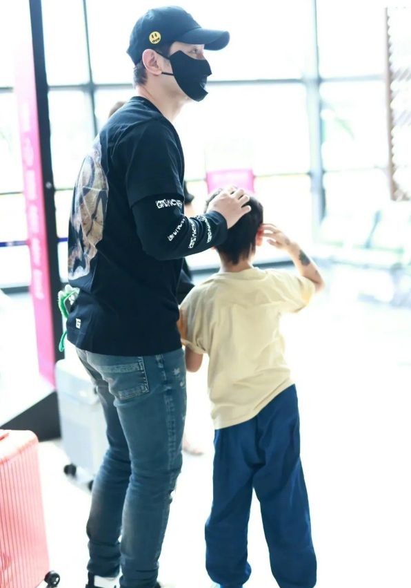 黄晓明带小海绵现身机场,过度曝光儿子惹争议,被网友质疑摆拍