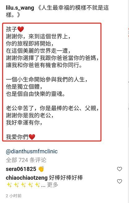 第一条动态中表达了对孩子和老公的感谢,字里行间满是爱意,令人动容。