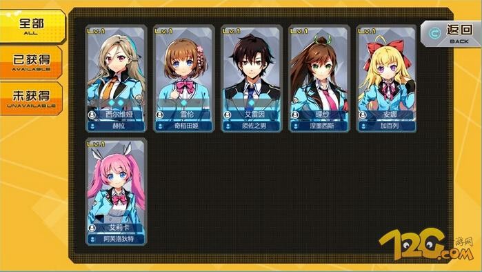 然后进入游戏以剧情介绍来,需要玩家选择一位看板角色作为剧情介绍,选择见面中能看到4位一年生而翻页还能看到未解锁的安娜(cv钉宫理惠),凯文(cv冲田苗)与二年生艾米丽(cv上田丽奈),西尔维娅(cv斋藤千和)。这就类似新手引导人物了。