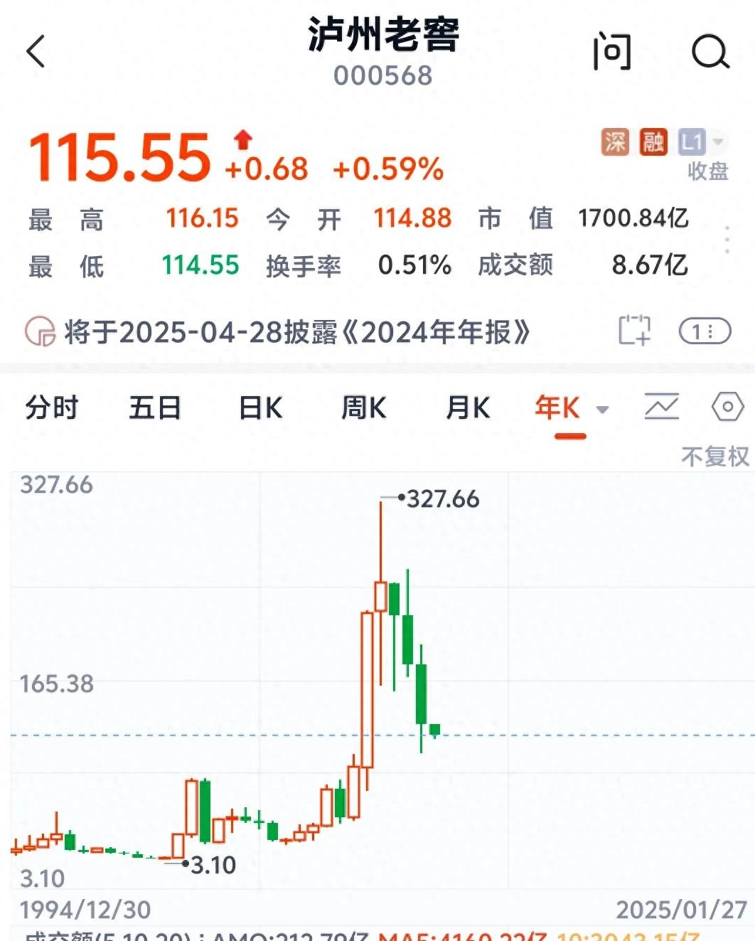 A品牌优势:泸州老窖是中国白酒行业的知名品牌,历史悠久,文化底蕴深厚,品牌影响力大,“国窖1573”更是中国白酒鉴赏标准级酒品,能为产品定价和市场拓展提供有力支撑,有助于稳定和提升业绩,进而对股价产生积极影响。