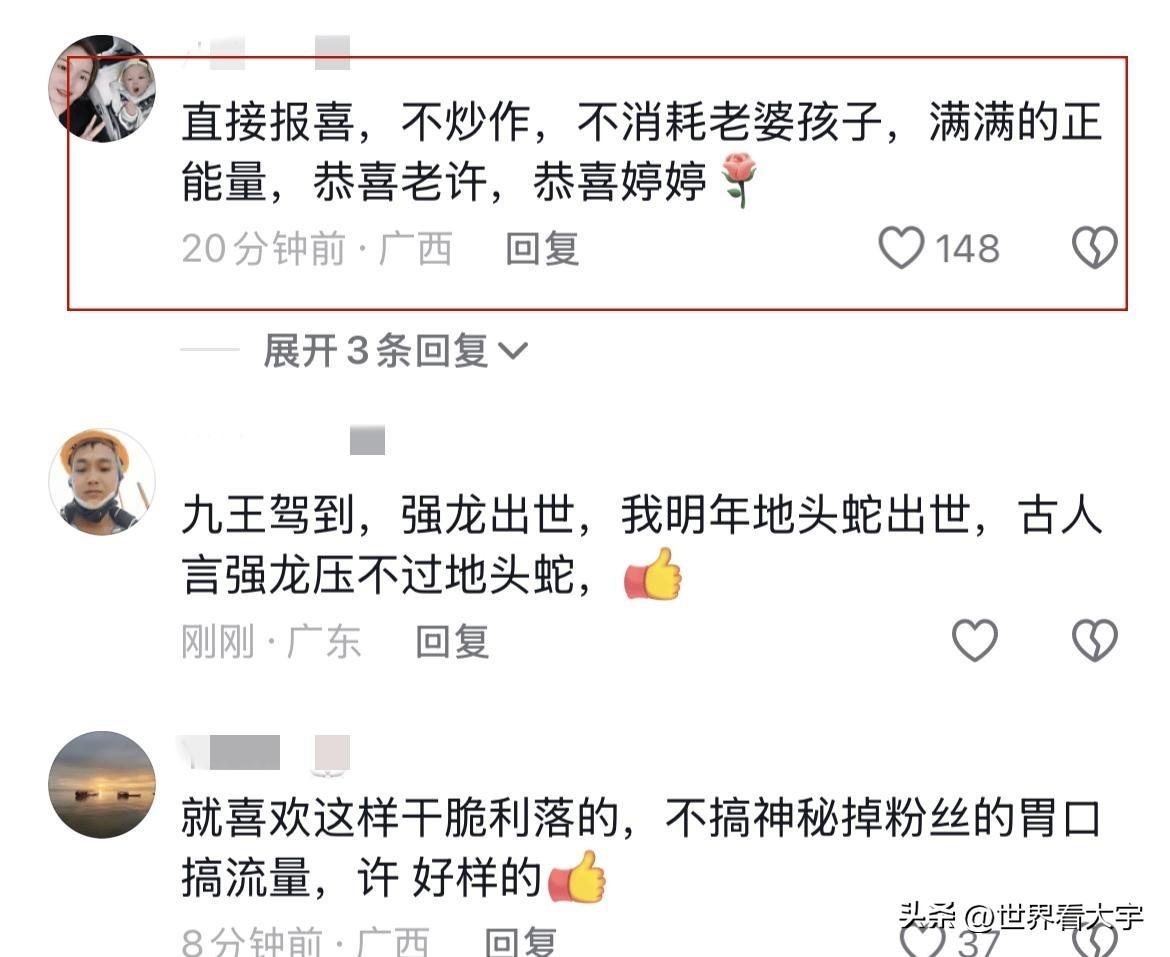 与其他网红通过吸引眼球的方式公布喜讯不同,许华升的低调处理方式赢得了不少网友的赞赏。在如今的社交媒体时代,很多人甚至会用自己的孩子作为流量的工具,但他却选择了以一种很自然的方式进行官宣。这不禁让人思考,许华升的这一做法能否带来更持久的影响力,或是让人反思当下网红文化的种种现象。