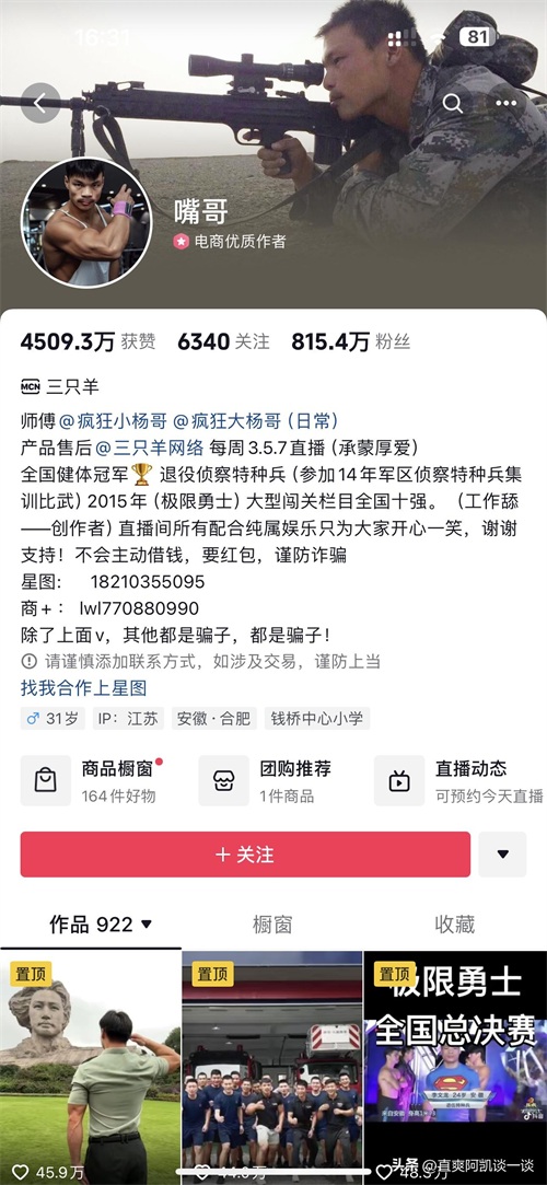 嘴哥获全国健美大赛第4名,小杨哥奖励20万。