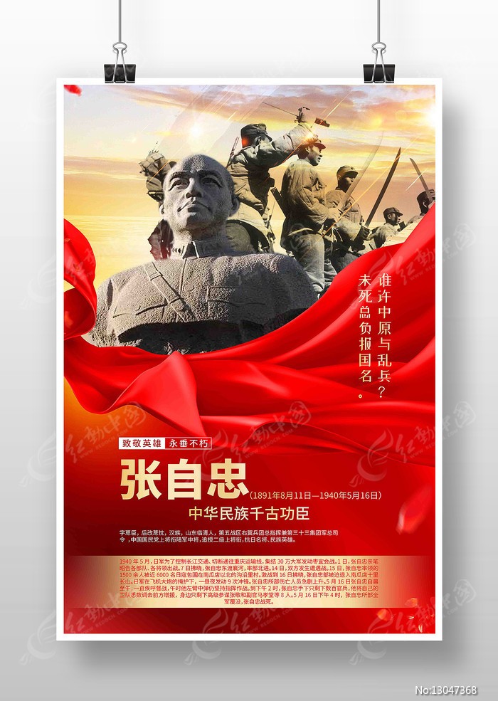张自忠一九四零年的枣宜会战中,张自忠所在部队全军覆役最终为国捐躯,张自忠也是二战同盟国中战死的最高级将领,牺牲时49岁。