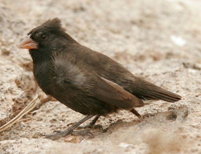尖嘴地雀,又称“食掌雀”“喙雀”“达尔文雀”等,英文名"Sharp-beaked ground-finch",拉丁学名"Geospiza difficilis",分布范围极其狭窄,仅在南美厄瓜多尔的加拉帕戈斯群岛周边有所发现。