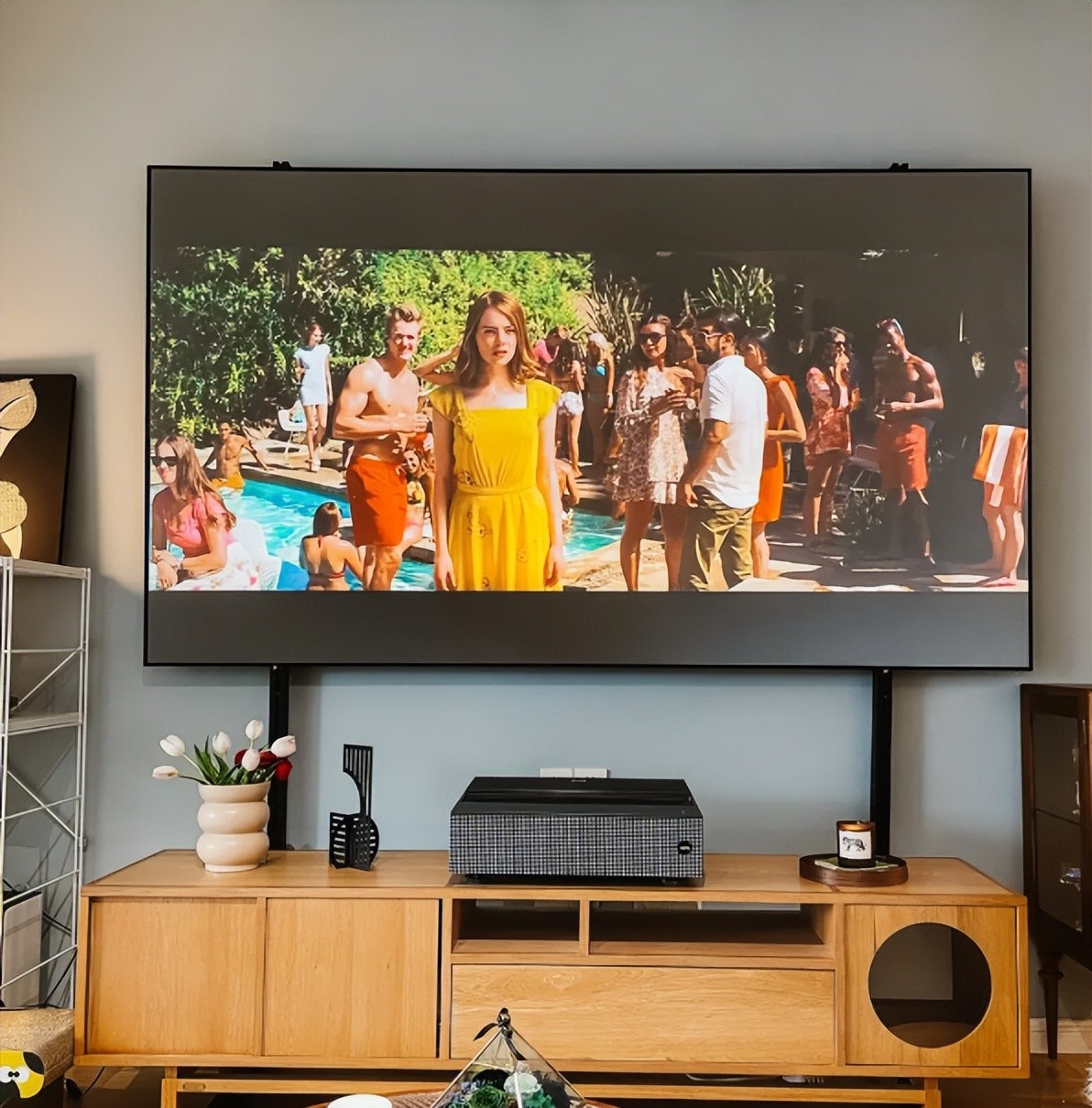 激光电视主打的就是大屏幕观影体验,它可以轻松做到80寸、100寸甚至120寸以上,所以从观影效果来看,沉浸感确实不错。但是激光电视激光反射成像的方式,从原理上就决定了它的对比度、亮度比起液晶电视要低的多,画面的细节自然也更少了。
