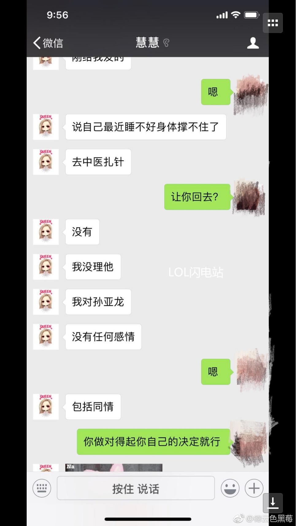 慧慧和闺蜜的聊天记录,和孙亚龙的聊天记录部分曝光。
