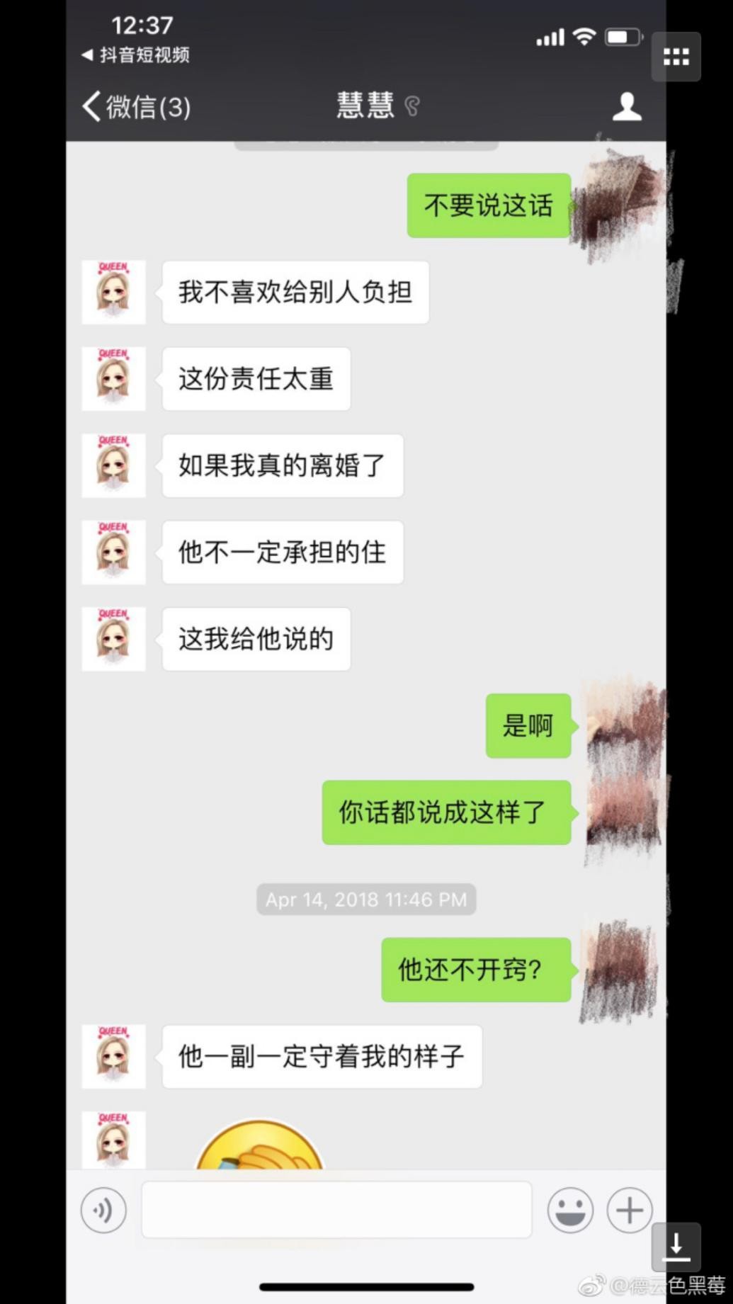 德云色黑莓,5月8凌晨在微博爆料,慧慧婚内出轨童童,聊天记录称两个都喜欢。