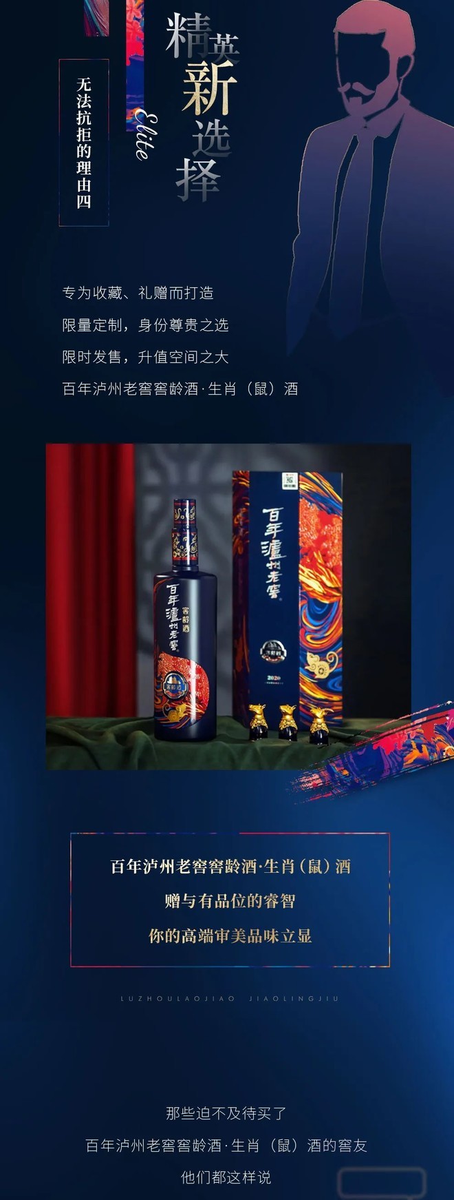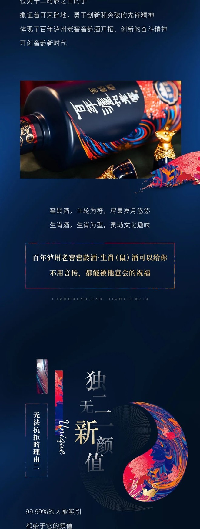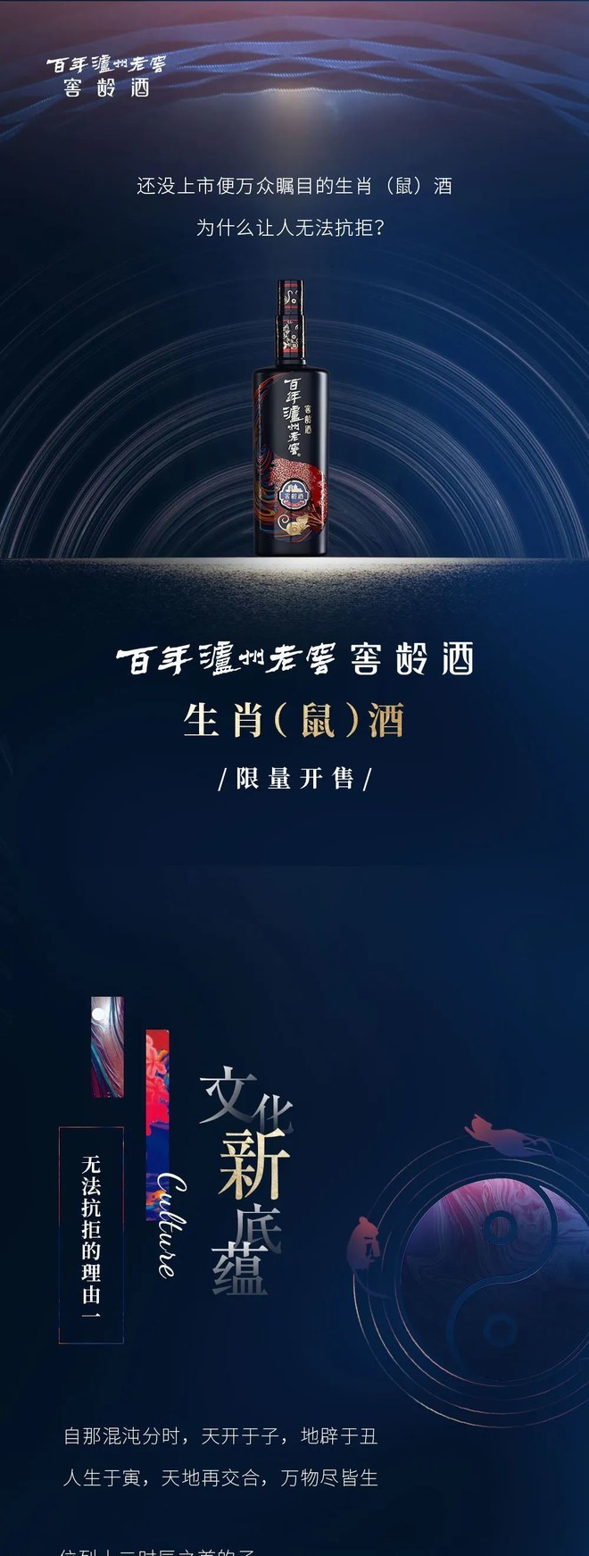 从鼠年生肖酒的设计细节中不难看出,其与百年泸州老窖窖龄酒一脉相承,每处设计都在加深品牌印记。而作为百年泸州老窖窖龄酒的首款生肖酒,更是扩大了品类的市场空间,并深度聚焦特定人群。