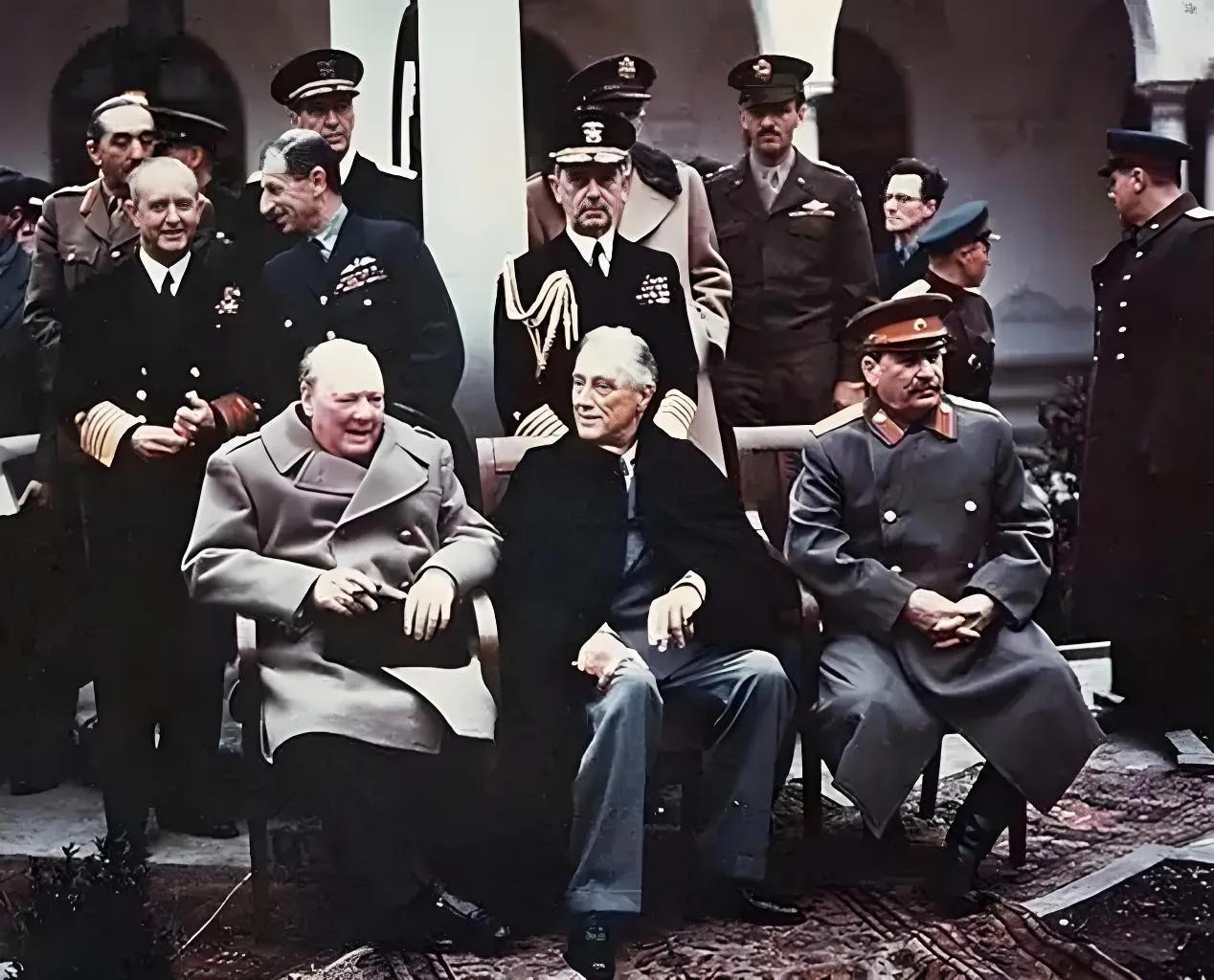 斯大林为什么把到手既得利益和美国人共享呢?原来他有自己的考量。早在1945年2月的雅尔塔会议上英、美、苏三国就达成了《雅尔塔协定》。协定中对苏联的义务和利益分配有详细的阐述:苏联应在德国投降、欧洲战争结束后二至三个月之内,协助同盟国参加对日战争。领土方面的条件是:1,库页岛南部及其邻近的一切岛屿均须归还苏联。2,千岛群岛(日本称北方四岛)让与苏联。