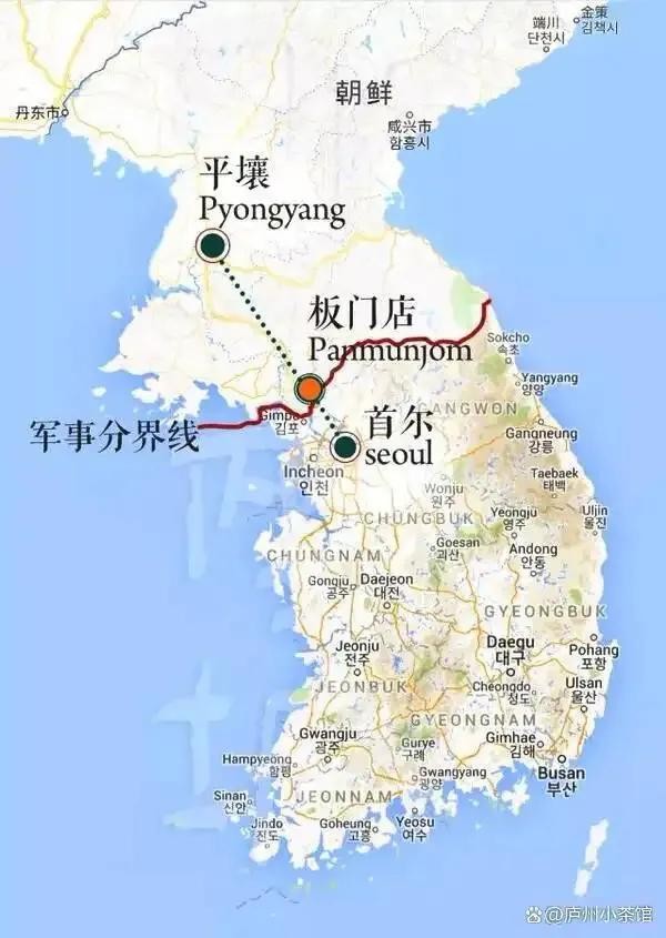 两个人望着墙上的朝鲜半岛地图不知所措,都没去过那个地方啊。他俩都清楚美军不可能在抢在苏军之前到达朝鲜半岛北部,如果苏军继续南下美军也没有能力阻止。无计可施之时,其中一个叫腊安·腊斯克的上校用红色铅笔在纵贯朝鲜半岛中部的北纬三十八度线上划了一道直线。另一名年轻的上校立刻拍手称快,表示赞同。
