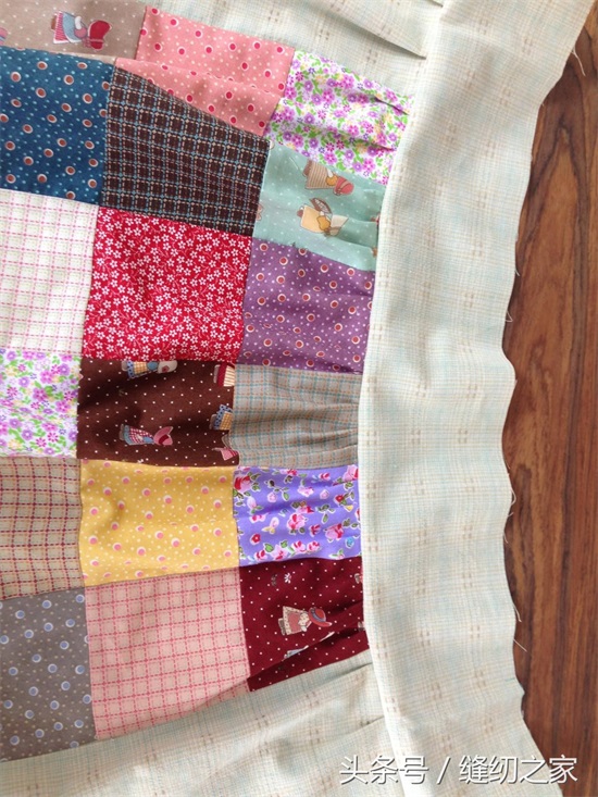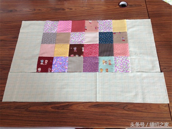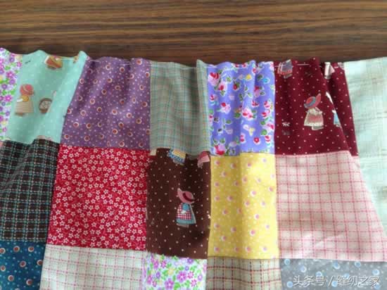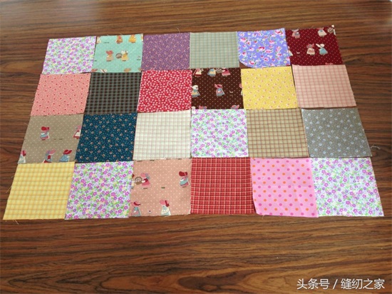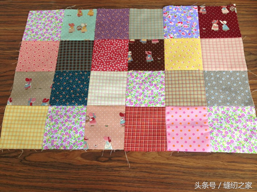 一、将10*10厘米花布排列整齐,然后每块正面对正面车缝,拼接起来哦~