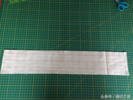 六 、取 10*55厘米的素布、正面对缩缝处、素布左右各往里折一厘米、车缝一条直线哦~
