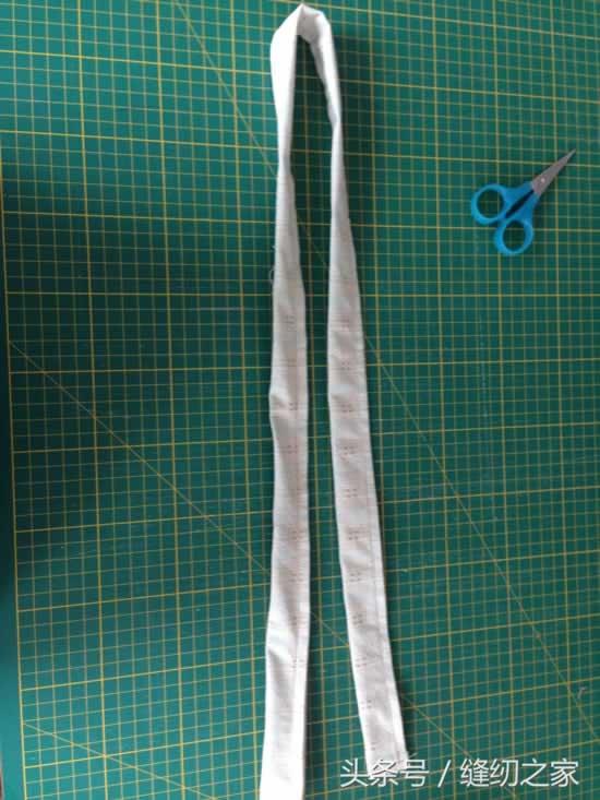 九、再对折车缝,完成腰带,把腰带穿入围裙口,就完成。