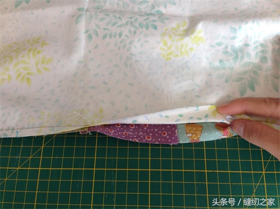 二 、取 15*35厘米素布,放于拼接好的花布左右两边,也是正面对正面,拼缝起来呢~