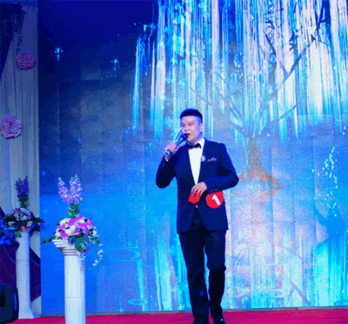 二、新郎新娘入场。现在播放婚礼进行曲,请新郎新娘入场。让我们大家以热烈的掌声为他们幸福的结为伉俪表示祝贺。今天我荣幸的介绍两位新人。新郎是**有限公司的电工师傅,一个把电和动力送到千家万户的光明使者。新娘**美容院的一名美容师,一个把漂亮送给无数人们的美丽使者。他们可谓文化般配,地位相当,让我们祝愿他们在天要做比翼鸟,在地要作并蒂莲,在今好的生活中,比翼双飞,竞相开放。