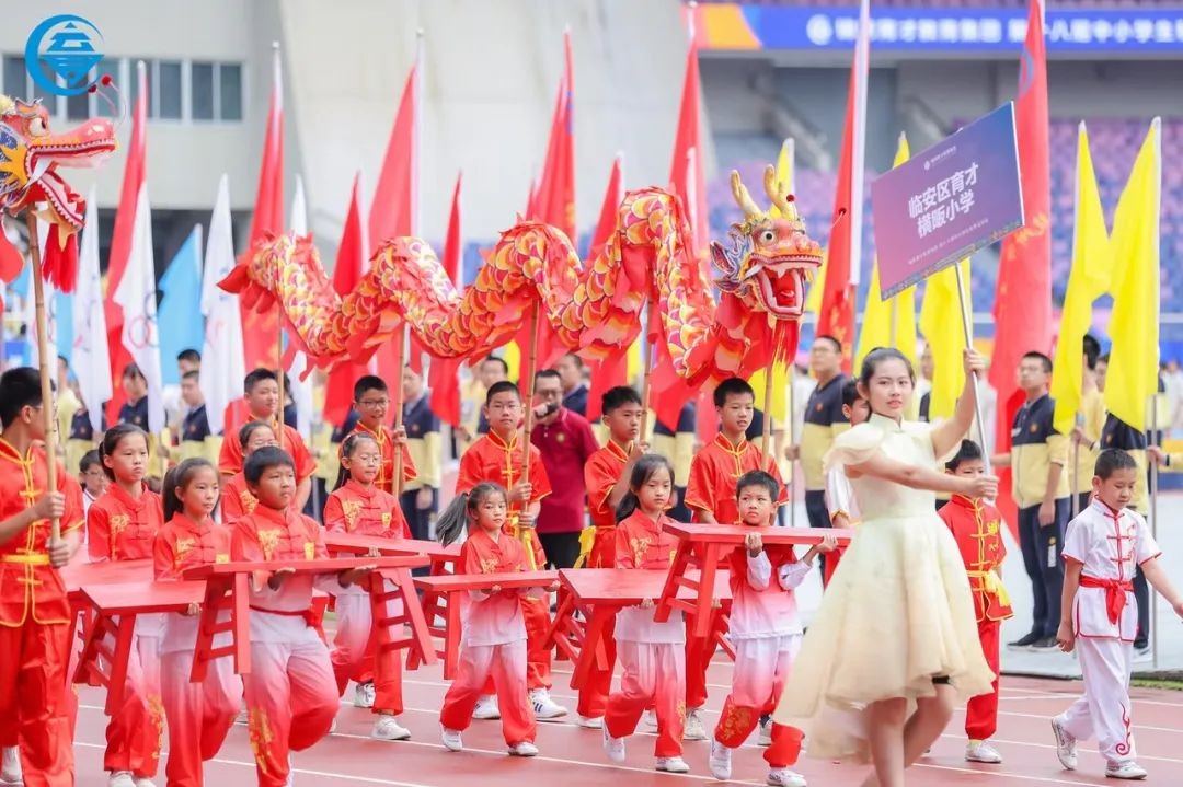 孩子们不负众望,不久前,在锦绣育才教育集团召开的万人运动会开幕仪式上,“山娃武术队”带去了精心准备的入场表演节目——《吴越龙腾》。短短几分钟,孩子们将拳法、倒立等招式演绎得淋漓尽致,一招一式“武”出山里娃的特色,出拳动作迅猛有力,赢得满堂喝彩。