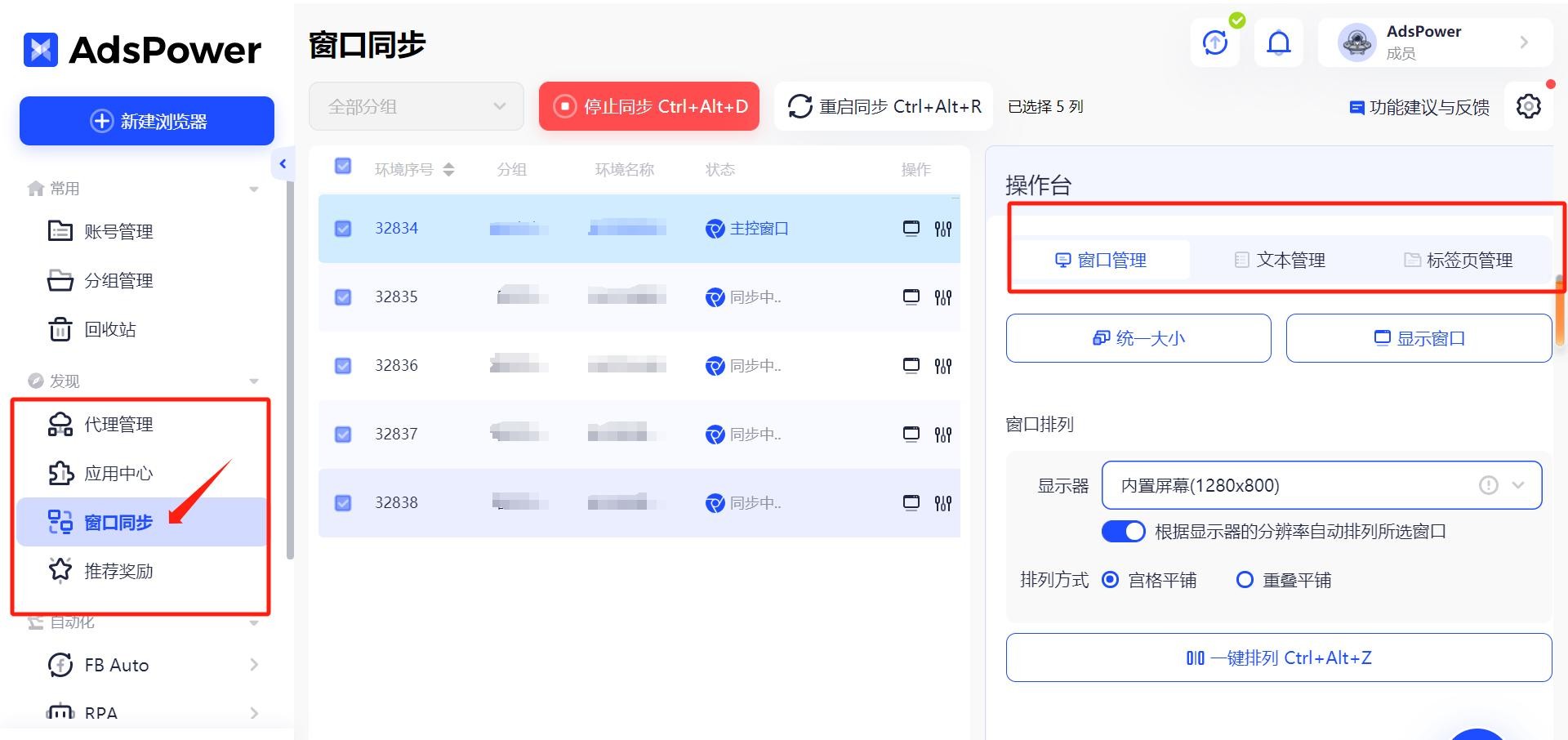 AdsPower的窗口同步功能允许你在多个浏览器窗口中执行相同的操作,这对于需要在多个直播平台上发布同一内容的用户来说极为有用。比如,当你需要在 Twitch、Facebook Live 和 Instagram Live 上同时发布直播预告时,只需在AdsPower的一个窗口中操作,其他窗口将自动同步这一动作,大大节省了时间和精力。