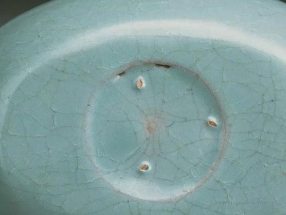 三:香灰胎汝瓷胎体的断面接近香灰色,还原烧制时,汝瓷受气氛和温度的变化影响,胎体颜色深浅不同,部分足端露胎呈火石红。
