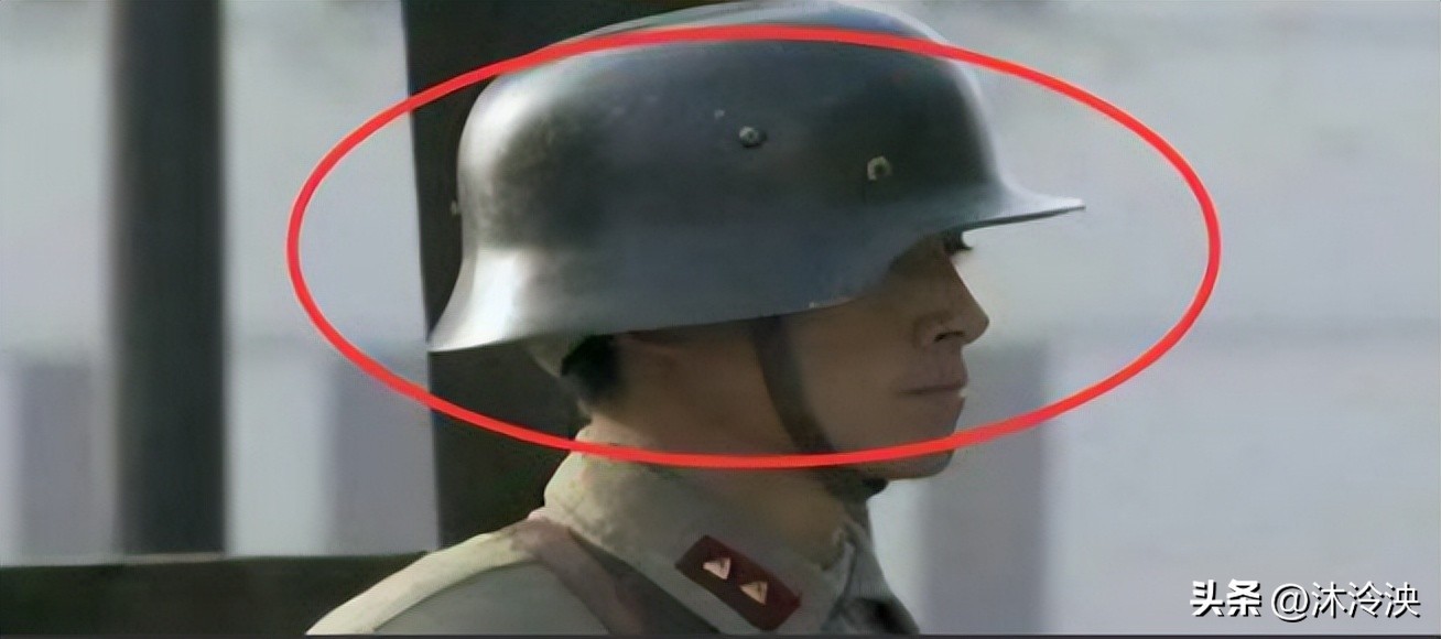 但当镜头一转一位战士戴上一个头盔后,离谱的一幕就发生了,因为这明明就是德式头盔啊,怎么还睁着眼说是美式装备呢?导演你真以为观众看不懂是吧?