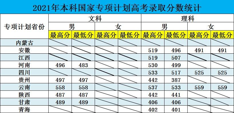 铁道警察学院传统高考省份2021年录取成绩一览(国家专项)