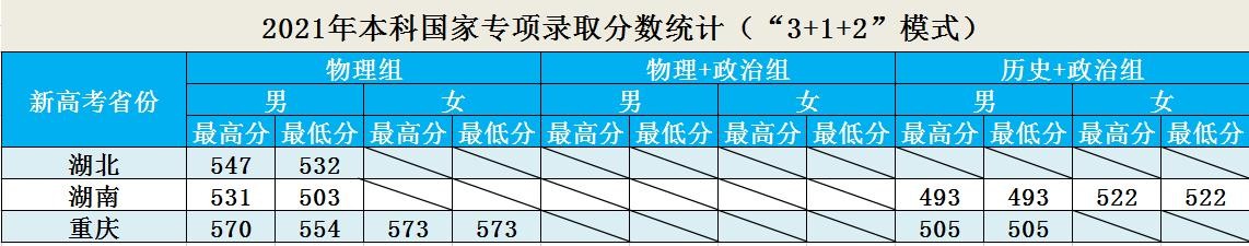 铁道警察学院高考改革省份2021年录取成绩一览(国家专项,3+1+2)