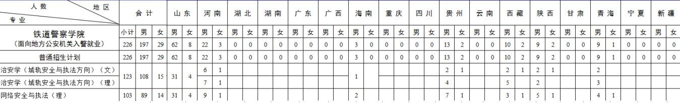 铁道警察学院2022年招生计划(面向地方公安机关入警就业226人)