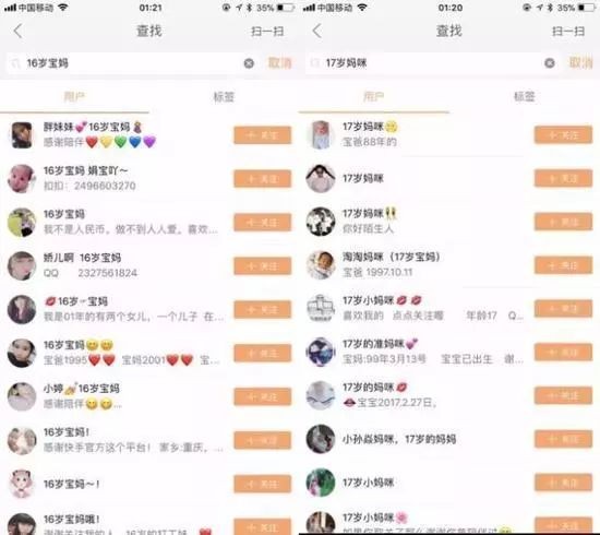 和活跃在美拍平台上的小学生直播类似,“15岁宝妈” “未婚先孕”等未成年直播一度成为快手app上的流行风潮。