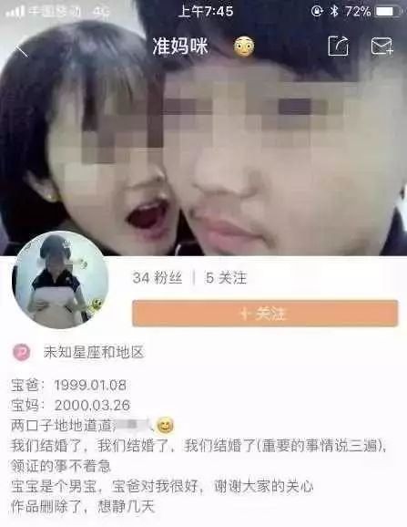 另一位“准妈妈”,称自己是2000年出生,今年17岁。老公1999年出生,18岁。她15岁就和宝爸“结婚”,只是年龄不够没领结婚证。