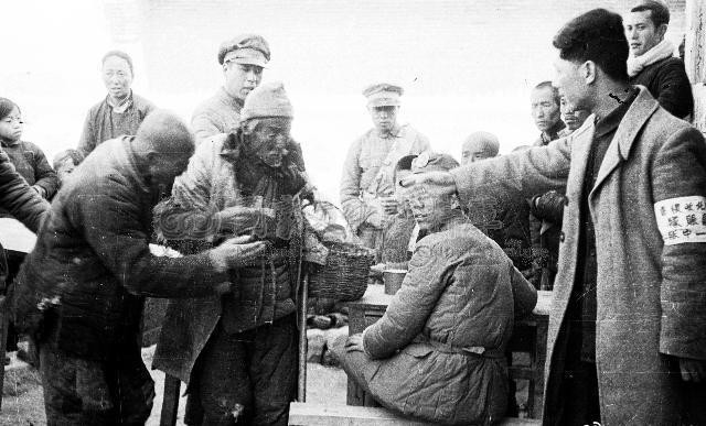 (28)1947年春,国民党军队占领延安后,百姓被迫戴上可以区分身份的不同形状的标签。老人妇女儿童是长条状的。青壮年人是方的。男人好像还集中关押。妇女儿童可以相对自由地生活。不知道区分标准是什么。