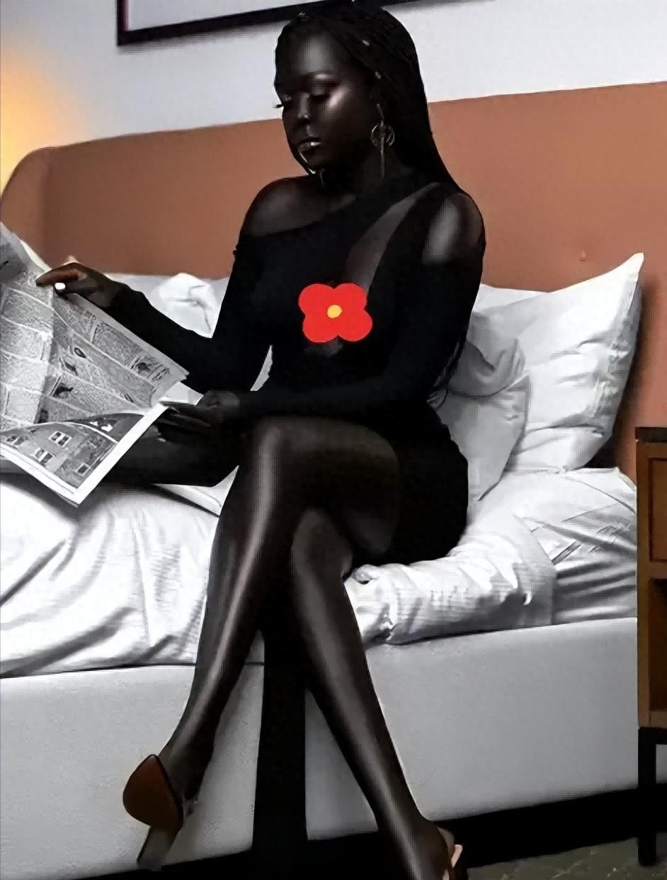 (03)“黑暗女王”的南苏丹模特尼亚金·盖特维奇,几乎所有人都会对她缎子般的黑皮肤感到惊讶。