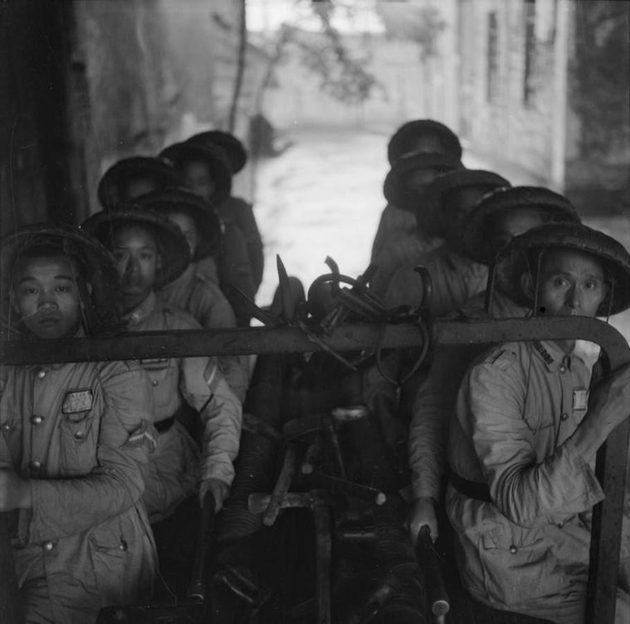 (33)重庆,抗战中的消防队员。由于日军飞机的频繁轰炸,重庆的消防队的任务非常繁重。然而在消防队员的眼中没有流露出疲惫的神情,有的是重任在肩的坚定目光。英国记者CECIL BEATON 拍摄于1943至1944年之间。