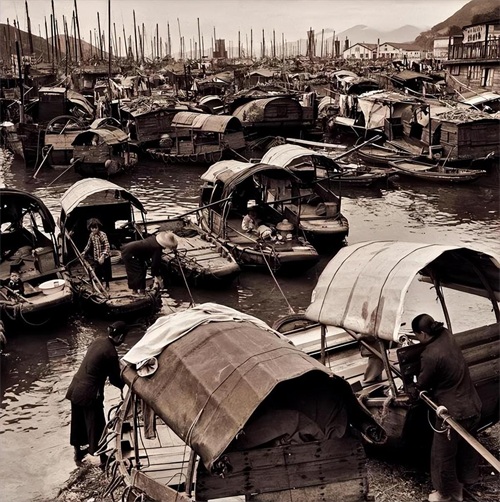(19)1946年,香港海边的渔民,船只太多,十分拥挤。