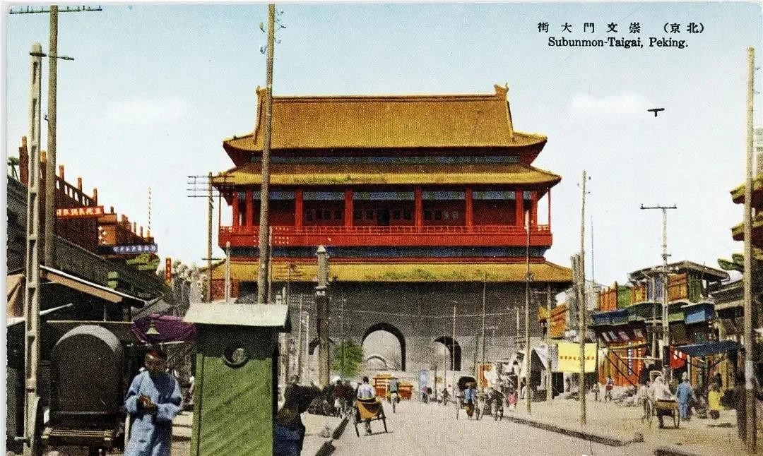 (32)1900年代,北京西长安街双塔寺。僧人和儿童好奇地看着摄影师和照相机