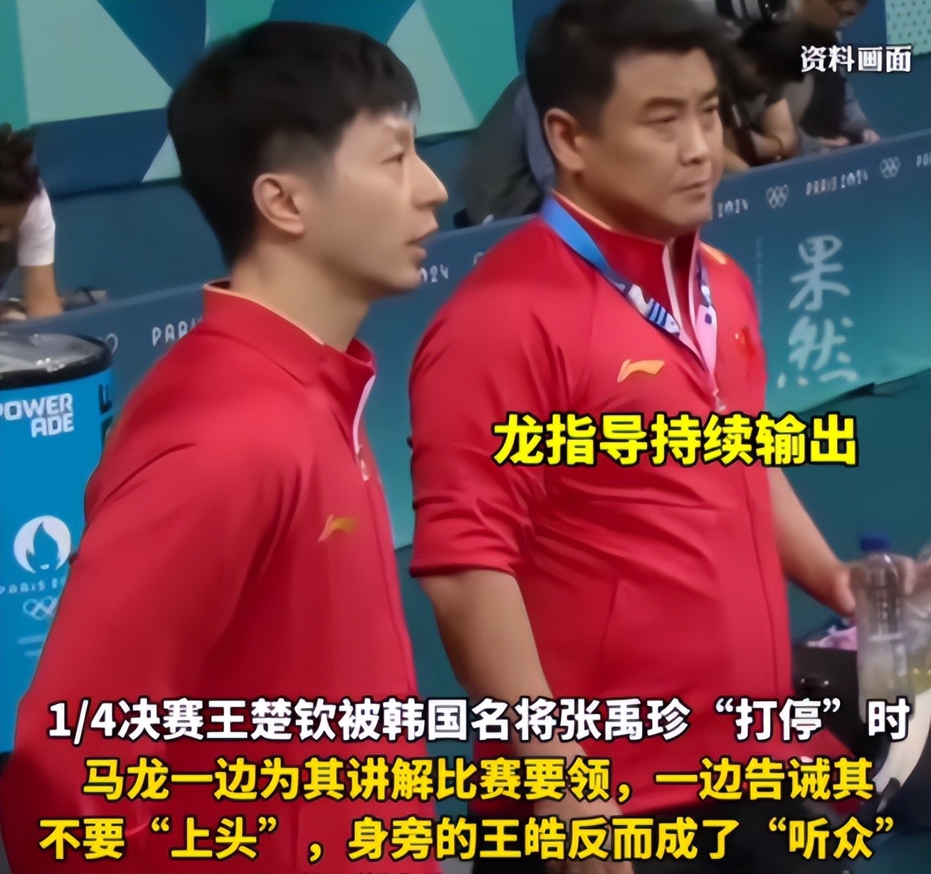当男团赛事进入白热化阶段,特别是王楚钦与韩国名将张禹珍的对决陷入僵局时,马龙的角色变得尤为关键。他没有选择袖手旁观,而是挺身而出,用自己的方式参与到比赛中来。他轻声细语地为王楚钦讲解战术要点,用沉稳的语气告诫他保持冷静,避免情绪失控。这一幕,不仅是对王楚钦的鼓励,更是对整个团队的鼓舞。