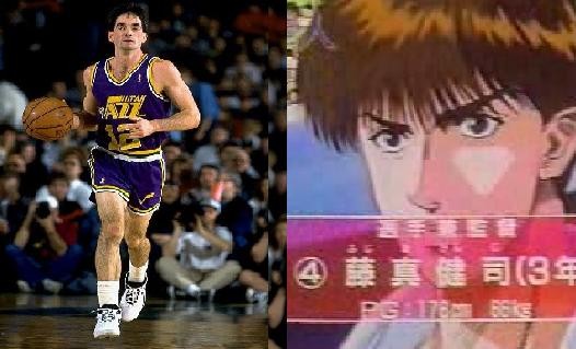 同样擅长抢断和助攻,同样是远投的高手(只不过藤真是左撇子),同样头脑冷静是球队的核心,同样的对球队忠诚(斯托克顿一身奉献于爵士,而藤真为了冠军甘愿留校一年),也同样没有冠军命。